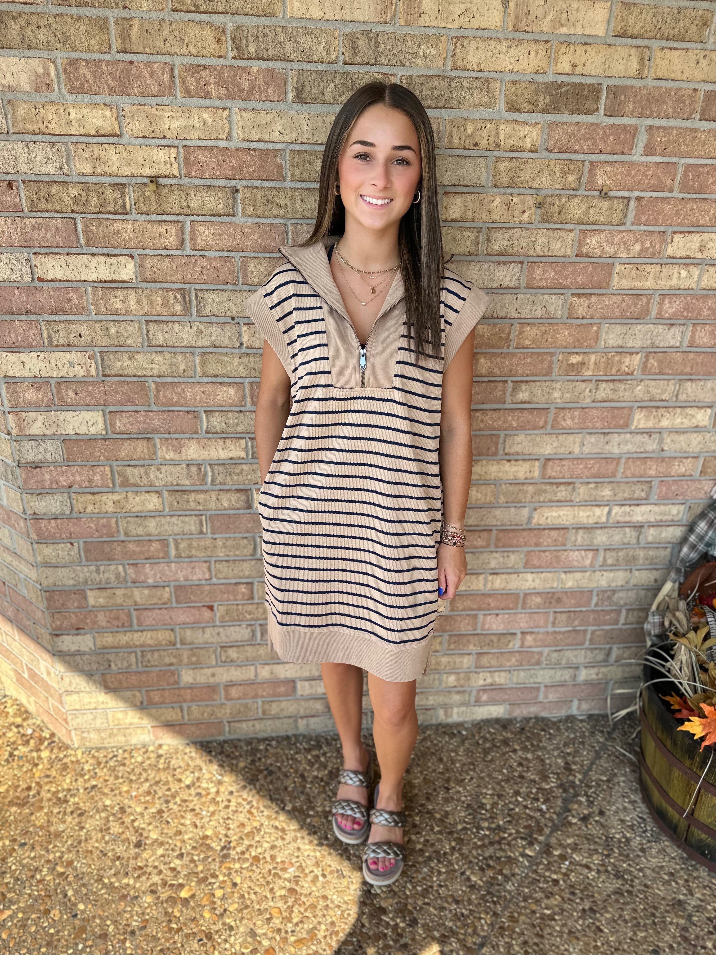 Taupe Navy Dress
