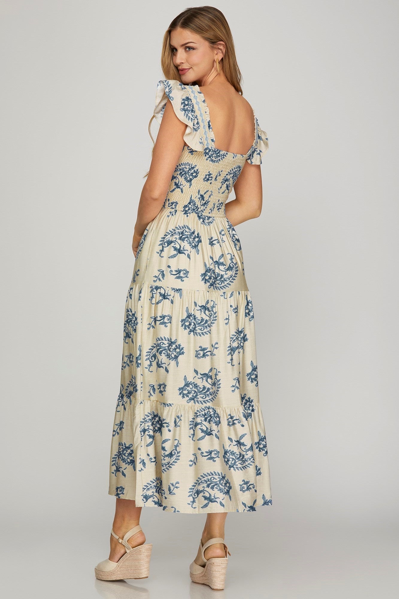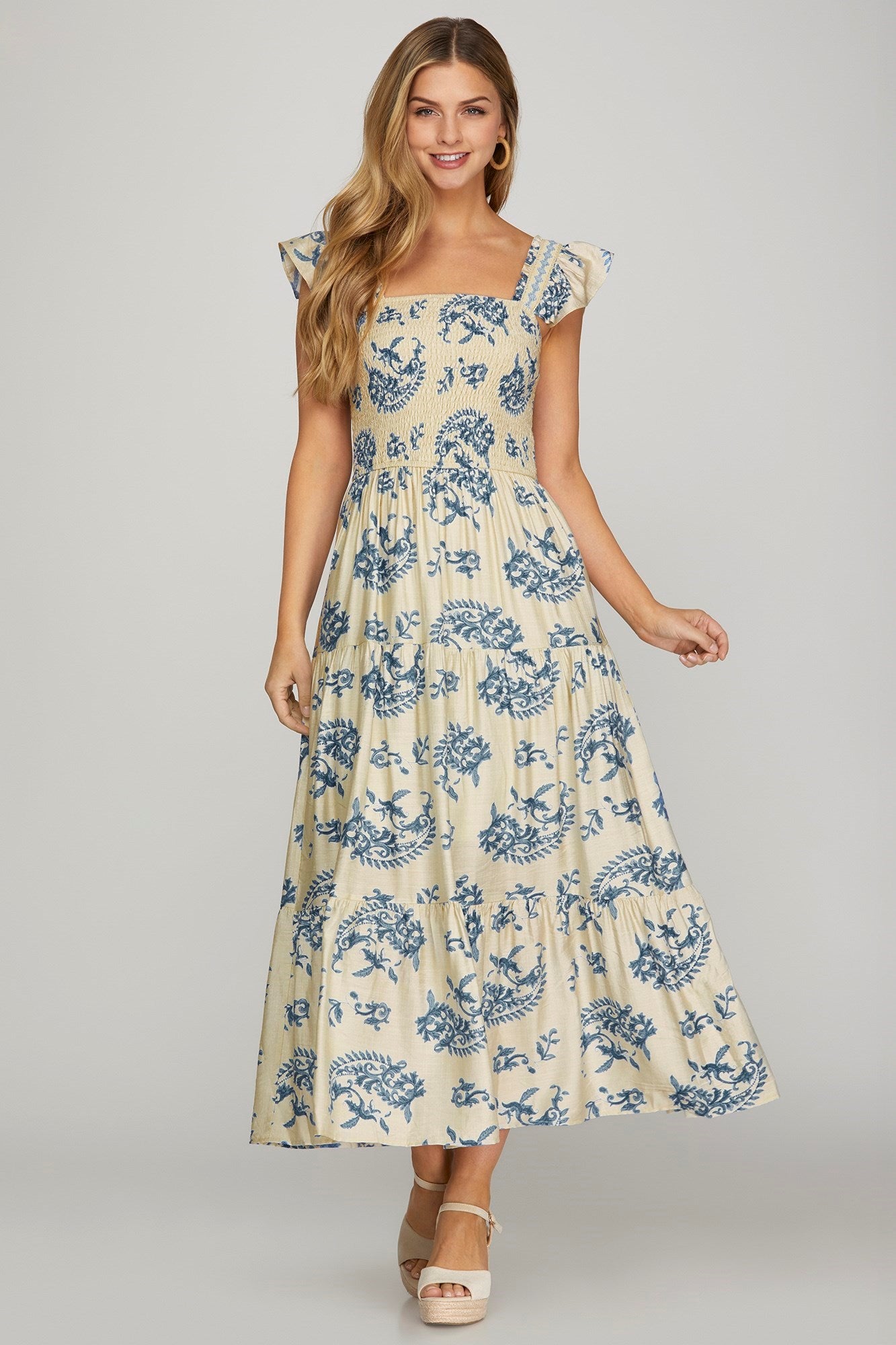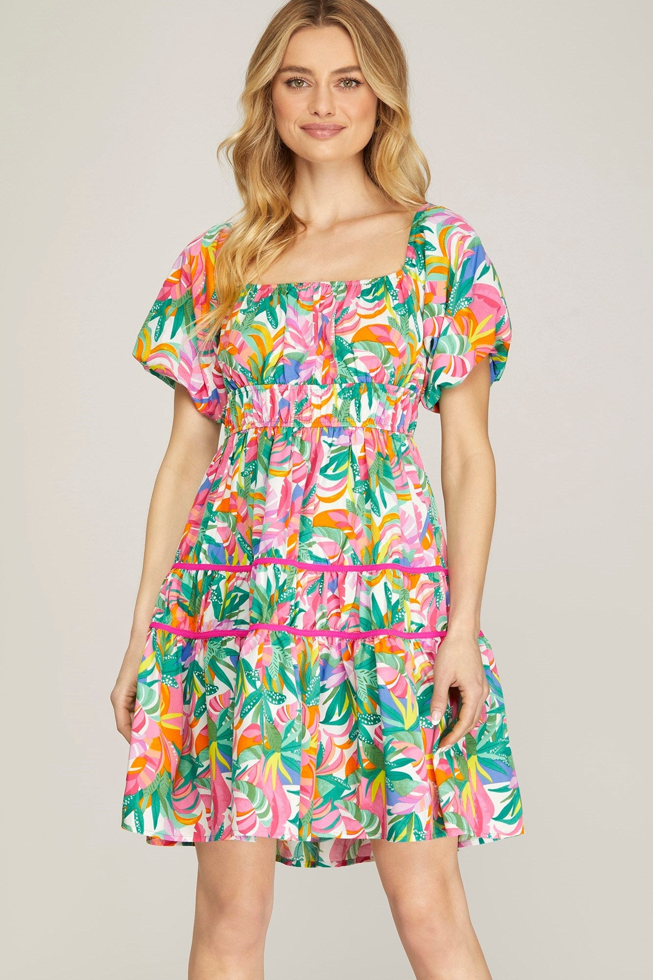 Floral Square Neck Smocked Dress