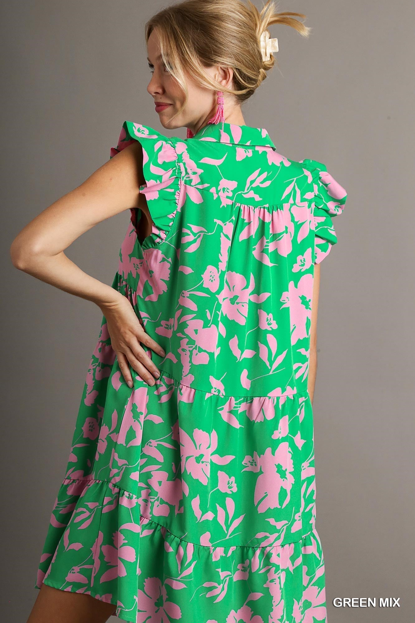 Green Floral Tiered Dress