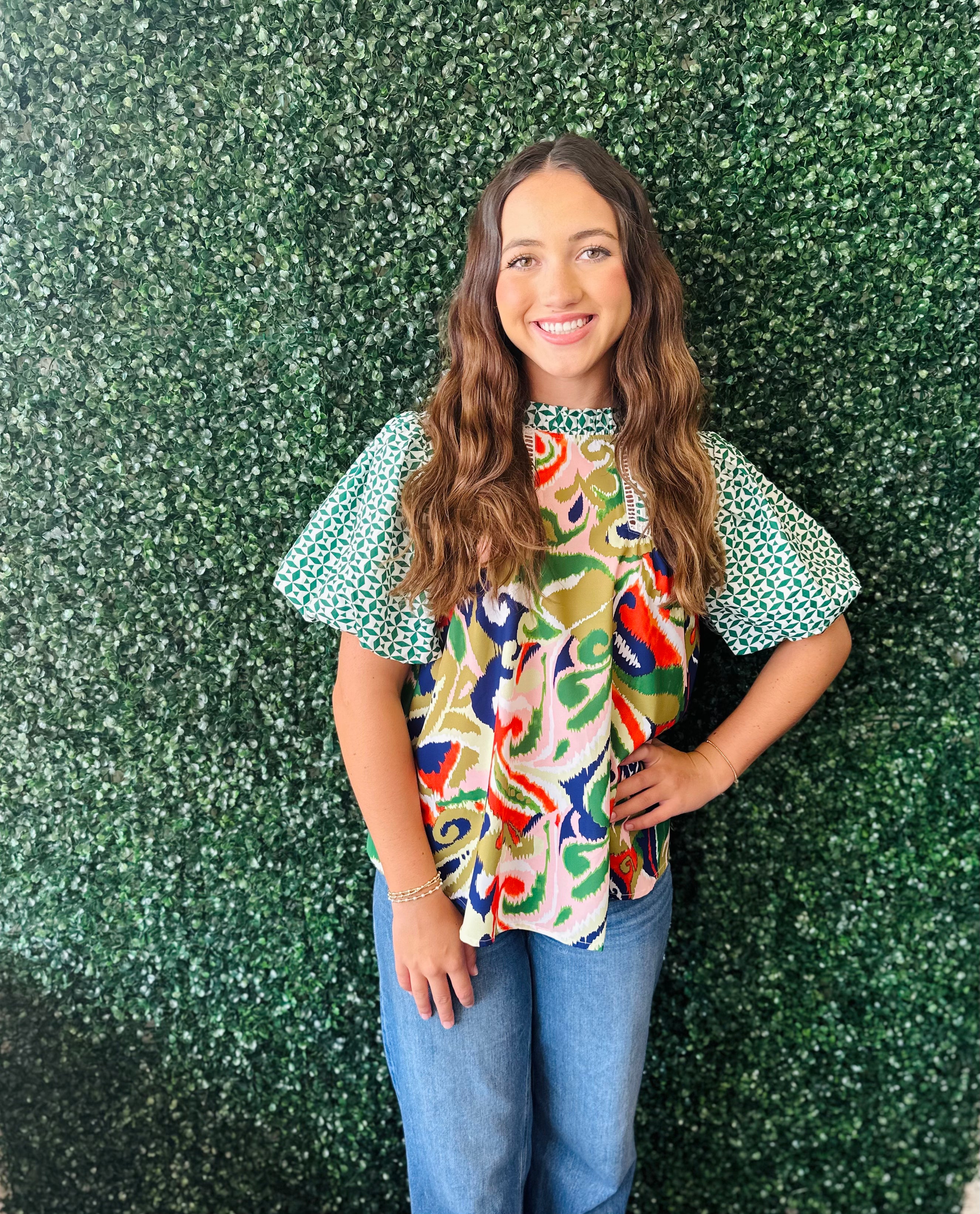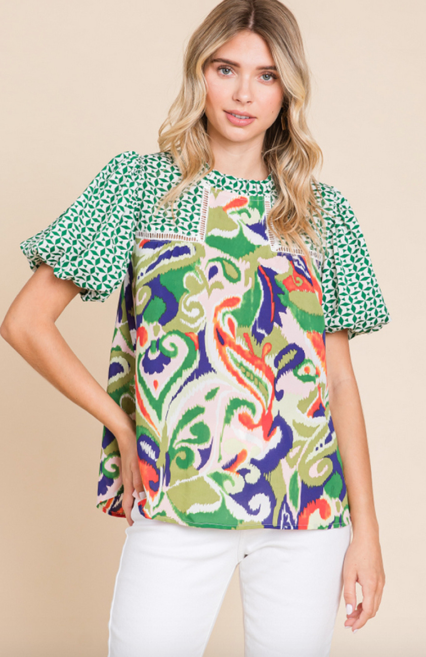 Green Bubbled Sleeved Top