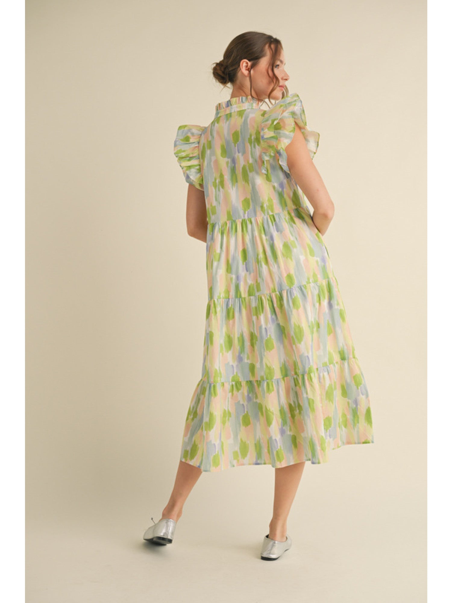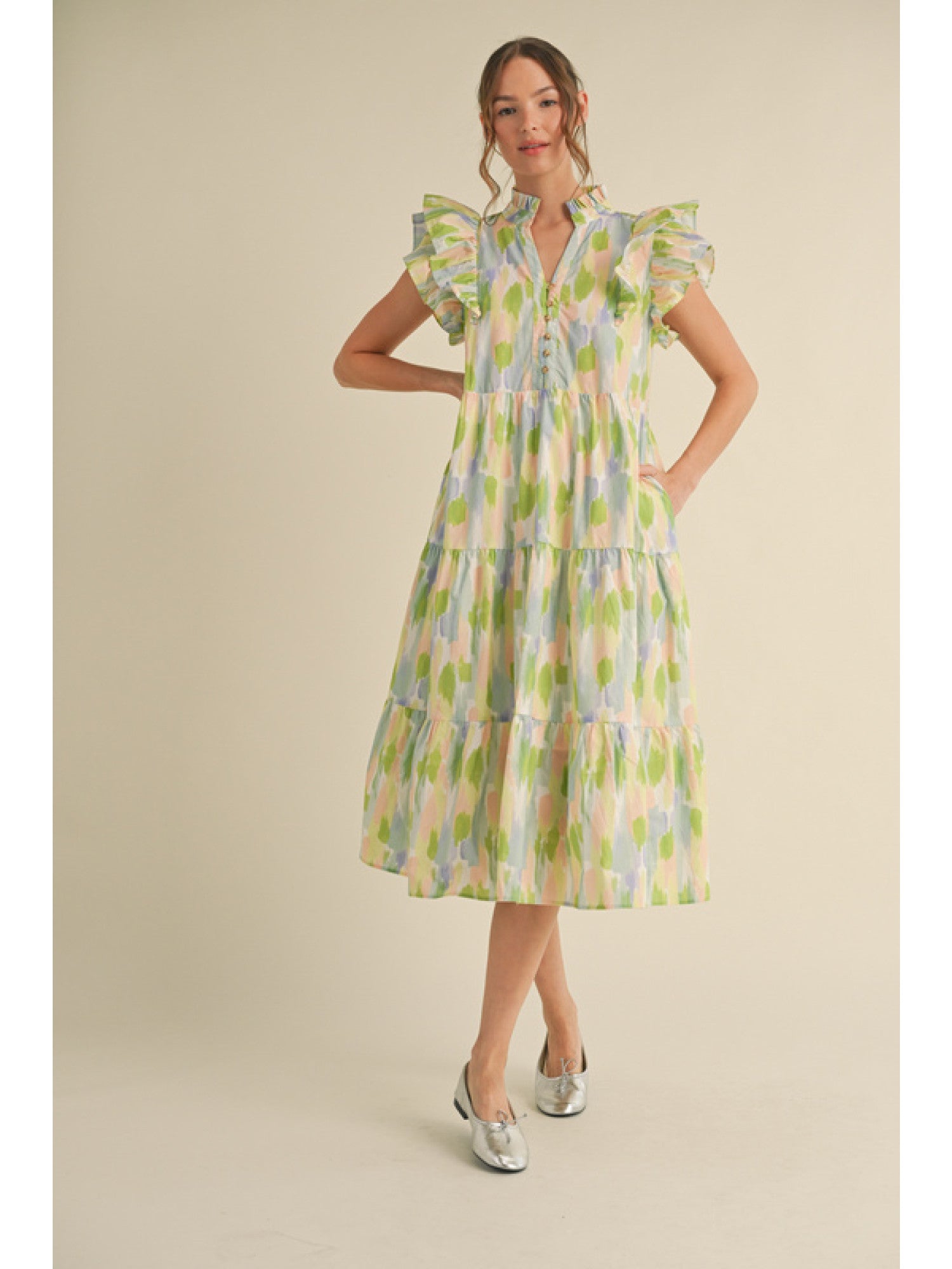 Green Woven V Neck Top