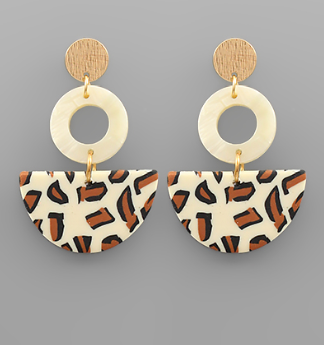 Circle & Leopard Clay Earrings